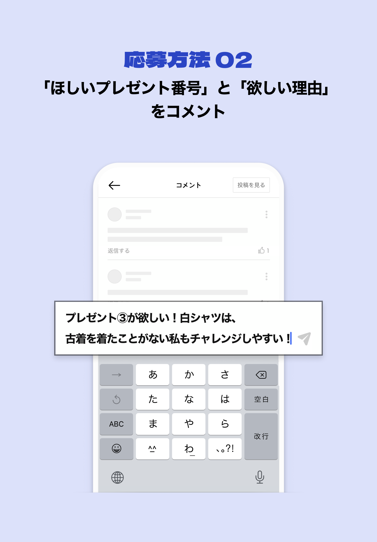 「キャンペーン記事」のコメント欄に以下をコメントして応募完了