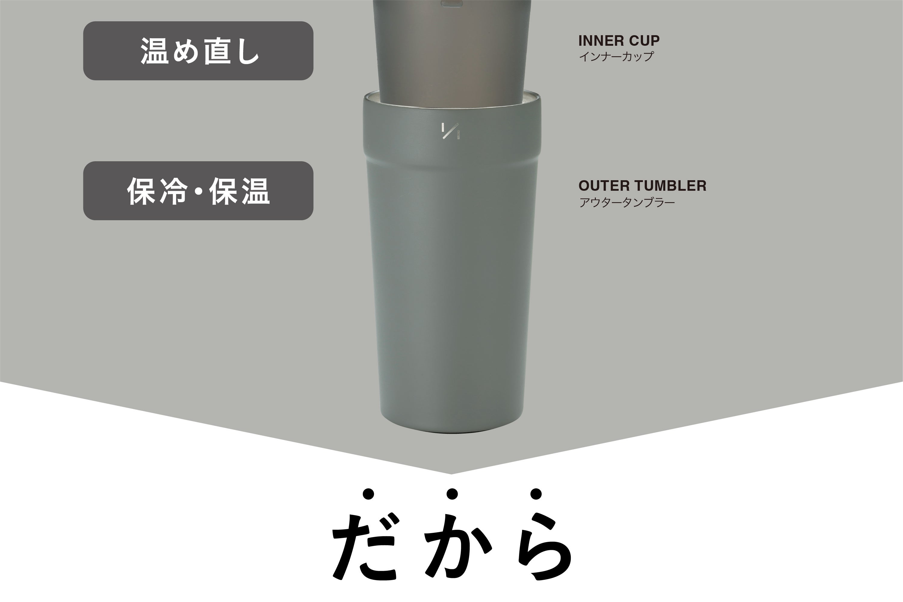 アウタータンブラーは真空断熱構造だから、保冷・保温もバッチリ。1年中使用出来ます。