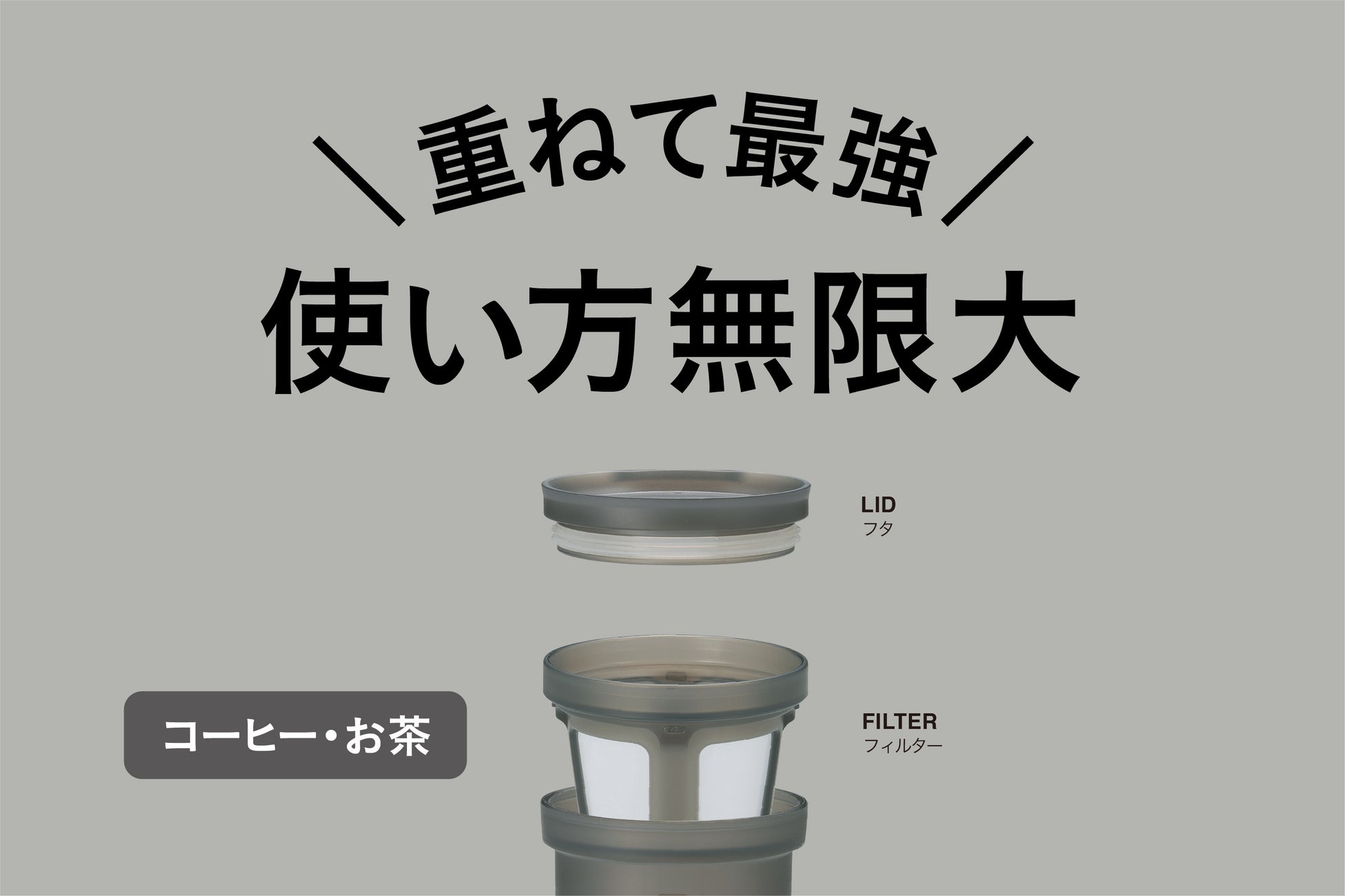 コーヒー・お茶・紅茶出しができるフィルター付きだから、1本で何役もこなせます。