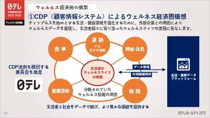 当社グループは「中期経営計画2022-2024」における重点目標として「ウェルネス経済圏の構築」を掲げ、CDP(顧客情報システム)を軸とする生活者個々に寄り添ったウェルネスライフの実現を目指して取り組んでいます。