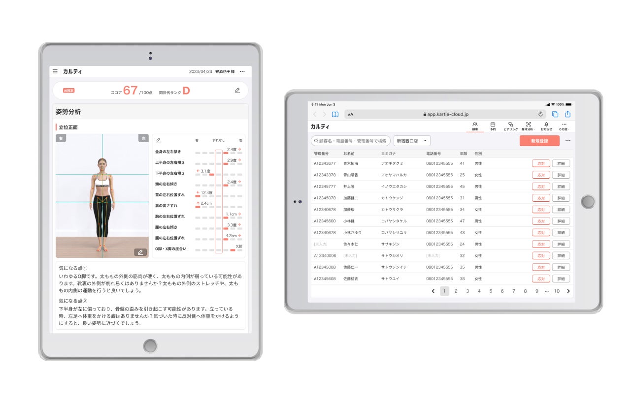 カルティクラウドは、カルテを通じて事業者様とそのお客様とのあらゆるコミュニケーションをスムーズにする、クラウドサービスです。接客レベルを底上げする次世代クラウドカルテ「マルチカルテ」(https://kartie-cloud.jp/karte/ )やお客様の身体の歪みや姿勢を簡単に解析・可視化するAI姿勢分析「シセイカルテ」(https://kartie-cloud.jp/shisei-karte/ )などを通じて、 顧客体験の最大化に向けた支援をします。