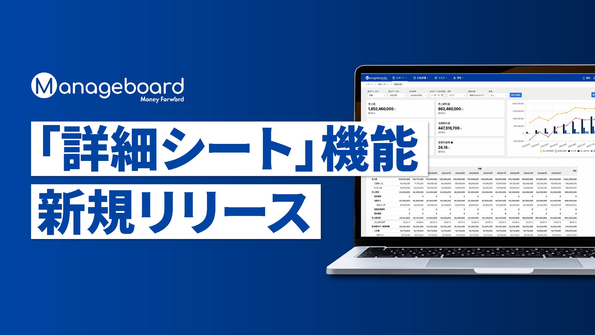 『Manageboard』(https://service.manageboard.jp/)を提供する株式会社ナレッジラボ(代表取締役CEO:門出祐介、本社:大阪府大阪市)は、経営管理プラットフォーム『Manageboard』において新機能「詳細シート」を開発し、提供開始しました。