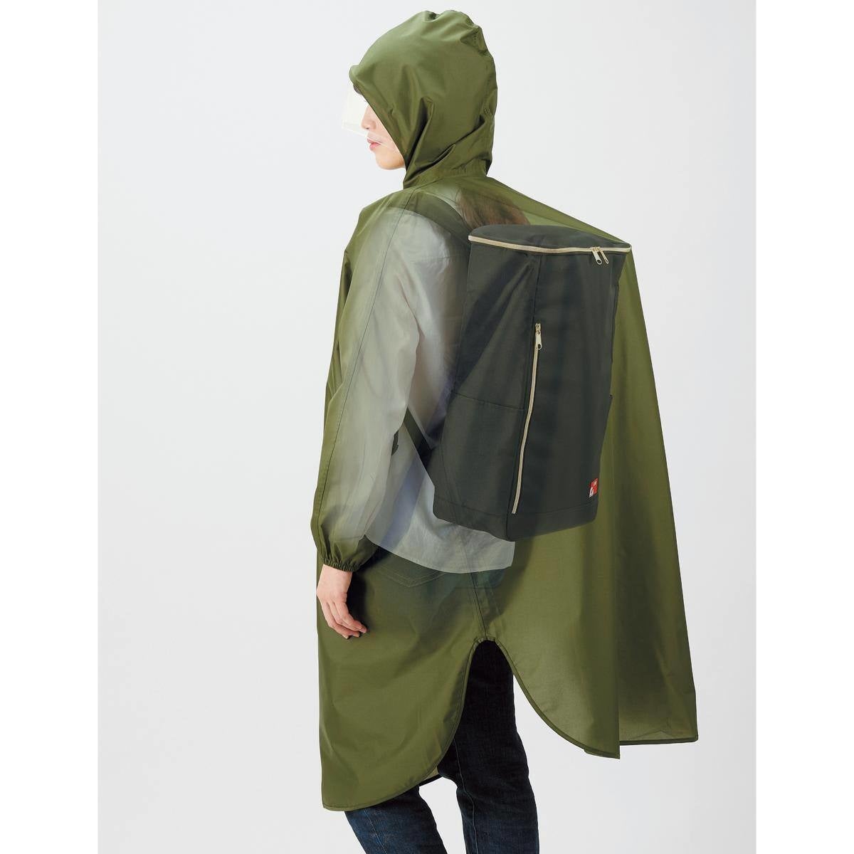 リュックを背負ったまま着られるサイズ感。寒い季節もアウターの上からラクに羽織れます。
