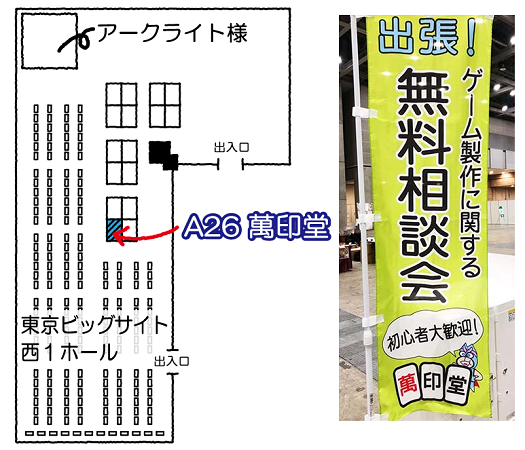 会場では、ゲームデザイナーの方、これからゲームを作ってみたいという方に向けて、るーでんすぱーてぃーと萬印堂がタッグを組んで無料相談会を実施いたします。