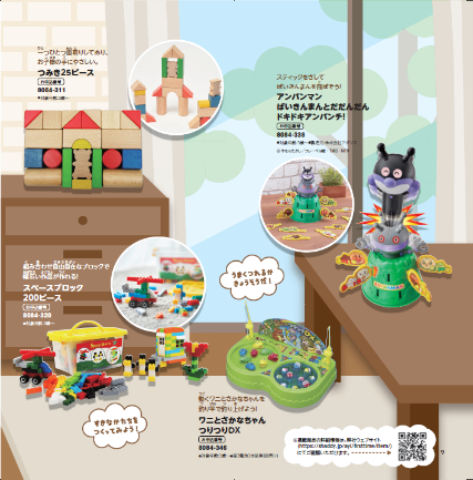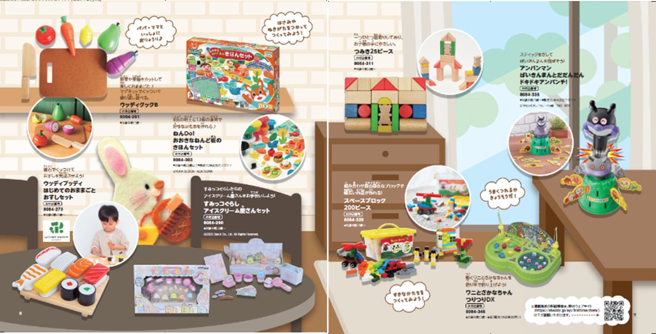 まだ文字を読めないお子さまでも見やすいように、掲載商品のスペック情報はカタログ誌面では最小限にし、詳細はWebサイトで確認できるようにQRコードを記載しています。