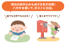 商品を申し込む交換ハガキもお子さまが挑戦できる仕様に!