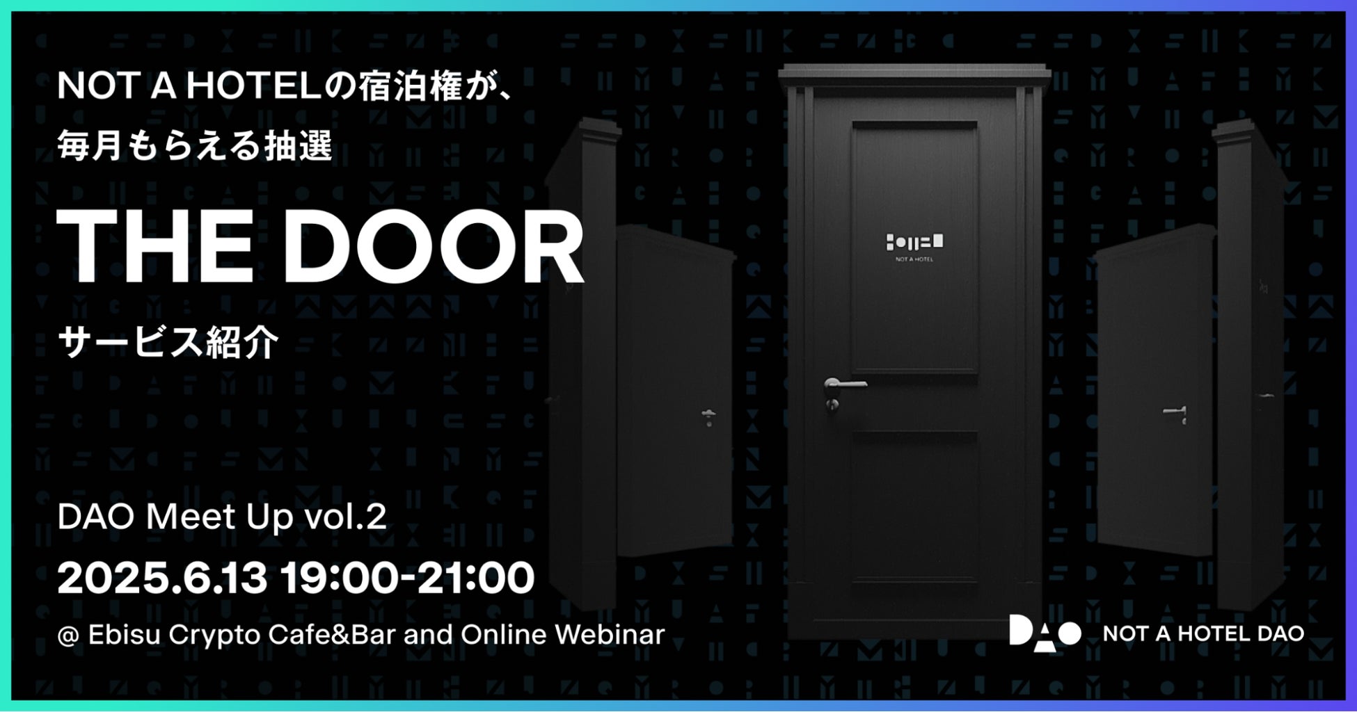 NOT A HOTEL DAO株式会社(代表取締役CEO:濵渦伸次)は、暗号資産「NOT A HOTEL COIN(NAC)」を保有するユーザー向けに、新サービス「THE DOOR(ザ ドア)」を2025年6月15日にリリースいたします。