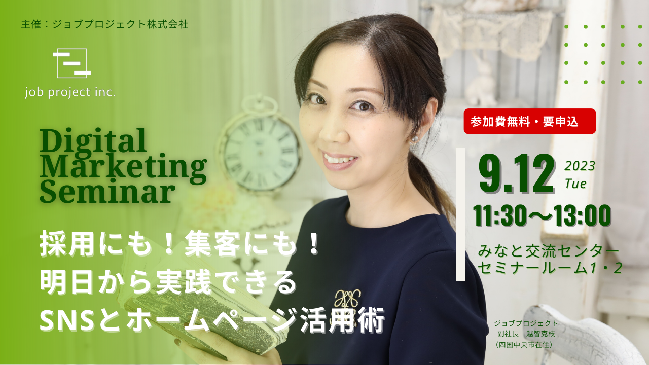 【9/12(火)今治市開催】参加費無料!デジタルマーケティングセミナー~採用にも!集客にも! 明日から実践できる SNSとホームページ活用術~