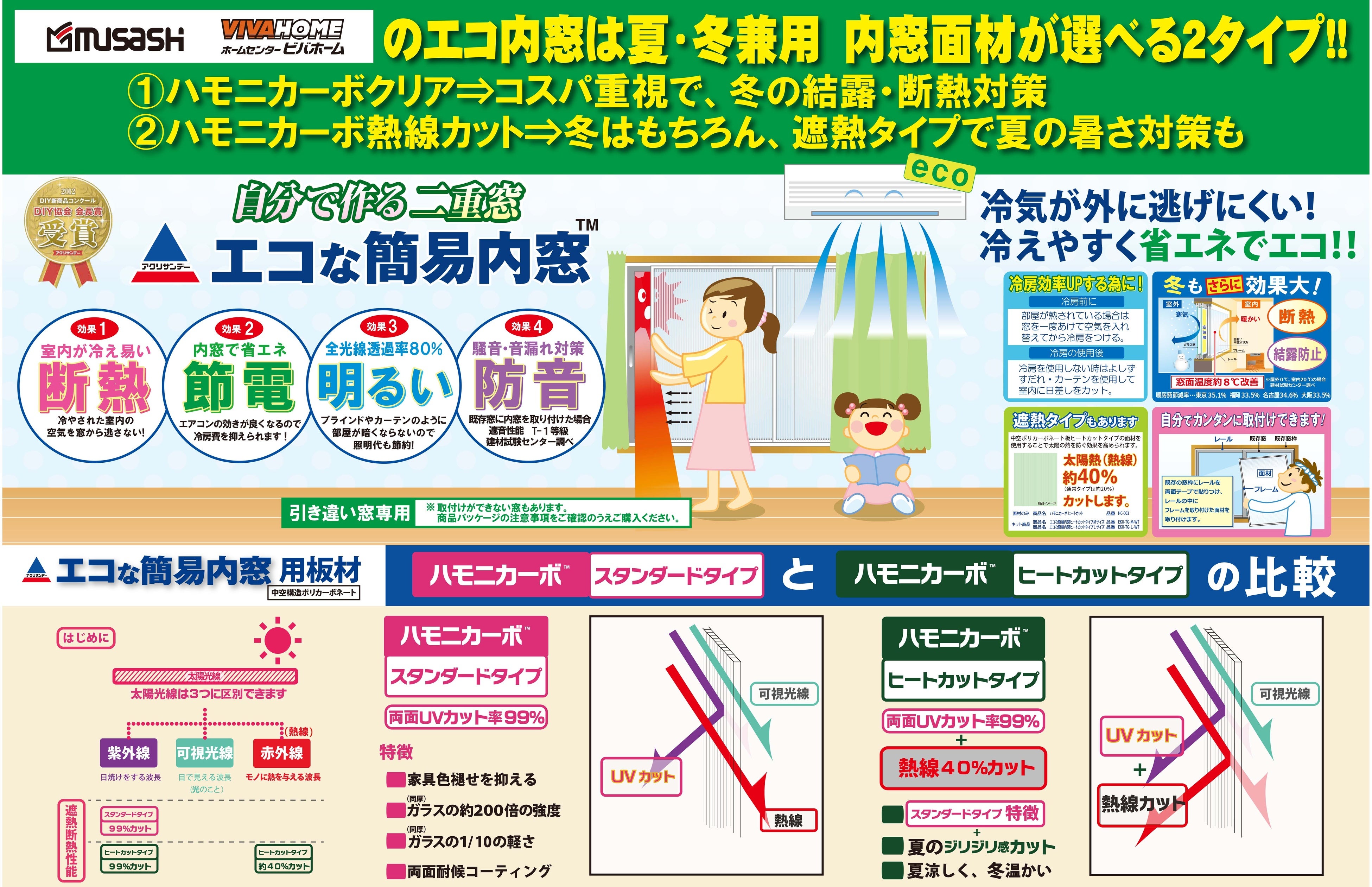”DIYで楽しく省エネ”、ホームセンタービバホームとムサシで、「エコな簡易内窓」キャッシュバックキャンペーンを開始