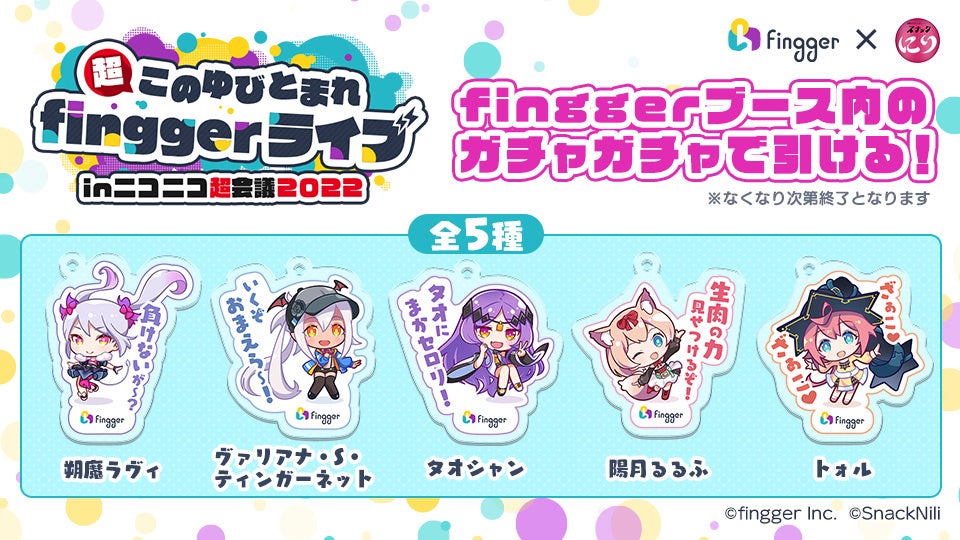 当日、ブース内にて『fingger』公式アンバサダーであるVTuberグループ「スナックにり」の、オリジナルアクリルキーホルダーを配布することが決定いたしました。
