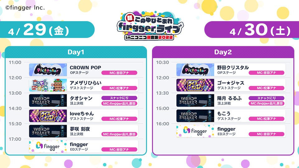- 「超このゆびとまれfinggerライブ in ニコニコ超会議2022」でプレイされるコンテンツ情報が公開!