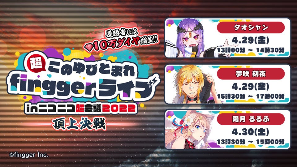 2022年4月29日(金・祝)より、2日間開催される超巨大イベント「ニコニコ超会議2022」の特別出展枠『fingger』ブース「超このゆびとまれfinggerライブ in ニコニコ超会議2022」にてプレイされるコンテンツ情報を公開いたしました。