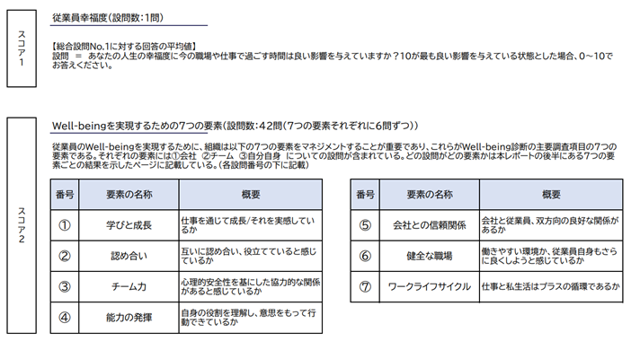 調査項目は各年の最新調査から導き出された幸福度向上のためにマネジメントが必要な7つの要素がベース ランキングが出る