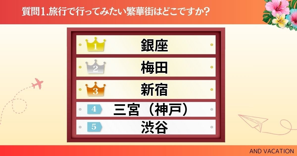 そこで、旅行で行きたい憧れの繁華街について、アンケートで聞き取り調査をしました。ぜひ、チェックしてみてください!