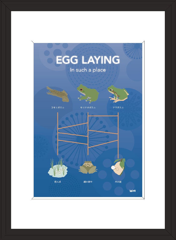 出張する作品は、生物の行動や生態を二コマ漫画やクイズ(あみだ)形式で表現したイラストアートです。アトアでは22作品をトイレ内に展示し、リラックスするそのひと時に、見つけた人だけがこっそり楽しめる、思わずクスっと笑ってしまうような「楽しく学べる」がテーマの作品ですが、展示場所に配慮してアトア唯一の撮影禁止作品となっています。
