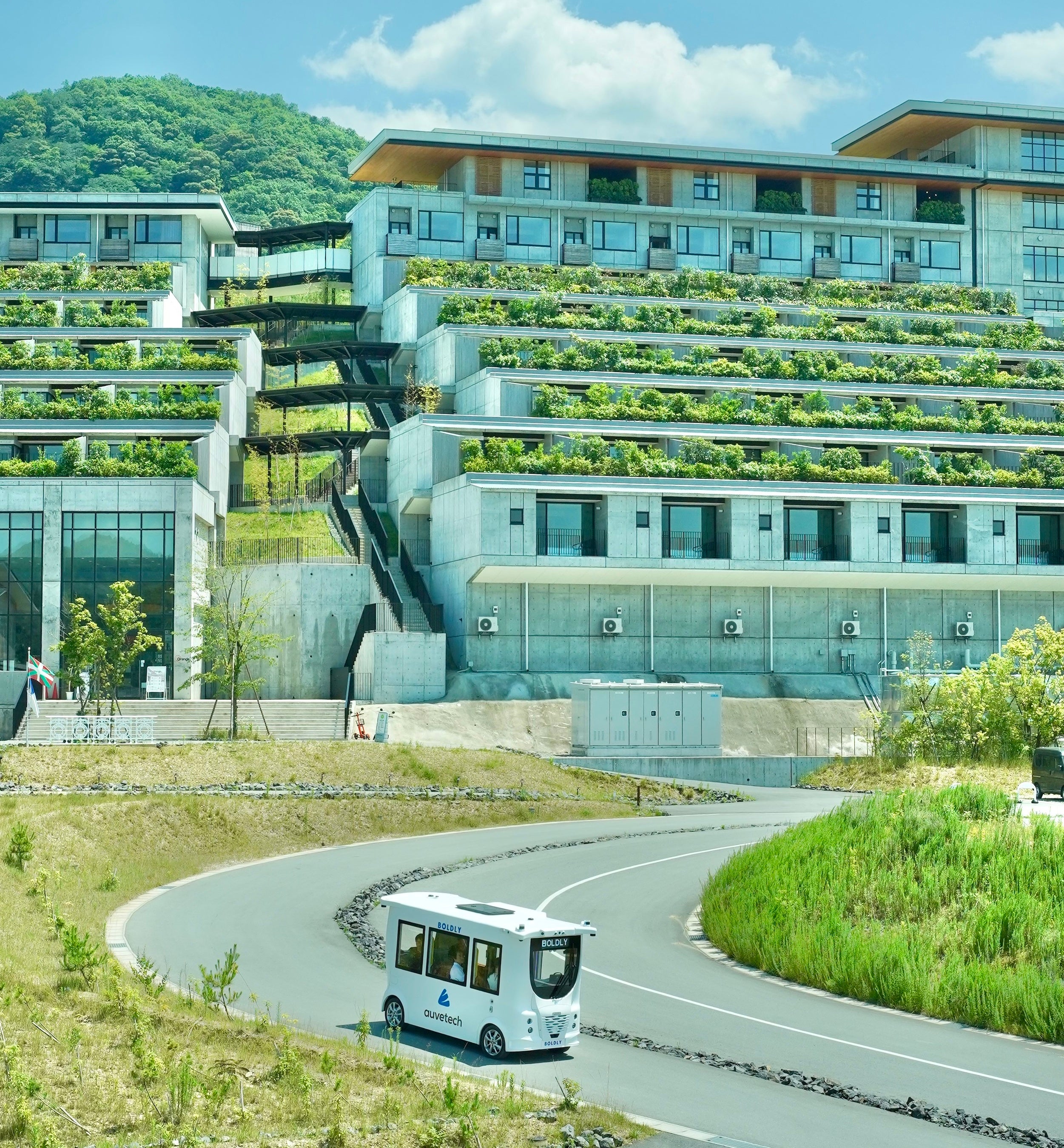 三重県多気町は、ソフトバンク株式会社の子会社であるBOLDLY株式会社(以下「BOLDLY」)およびヴィソン多気株式会社(以下「VISON」)と協力し、多気町の商業リゾート施設「VISON(ヴィソン)」におけるレベル4での自動運転サービスを目指して、自動運転EV「MiCa(ミカ)」(Auve Tech社製)を導入し、2023年12月19日から2024年2月29日まで運行※します(以下「本事業」)。