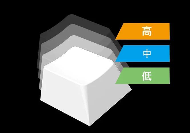 APCは高(2mm)・中(2.5mm)・低(3mm)の3段階で設定でき、専用のソフトを開いたりする必要はなく、キーボードでFn+F8(↓)を押すだけで変更できるので、気になったときにすぐに変更できてまったく手間がかかりません!