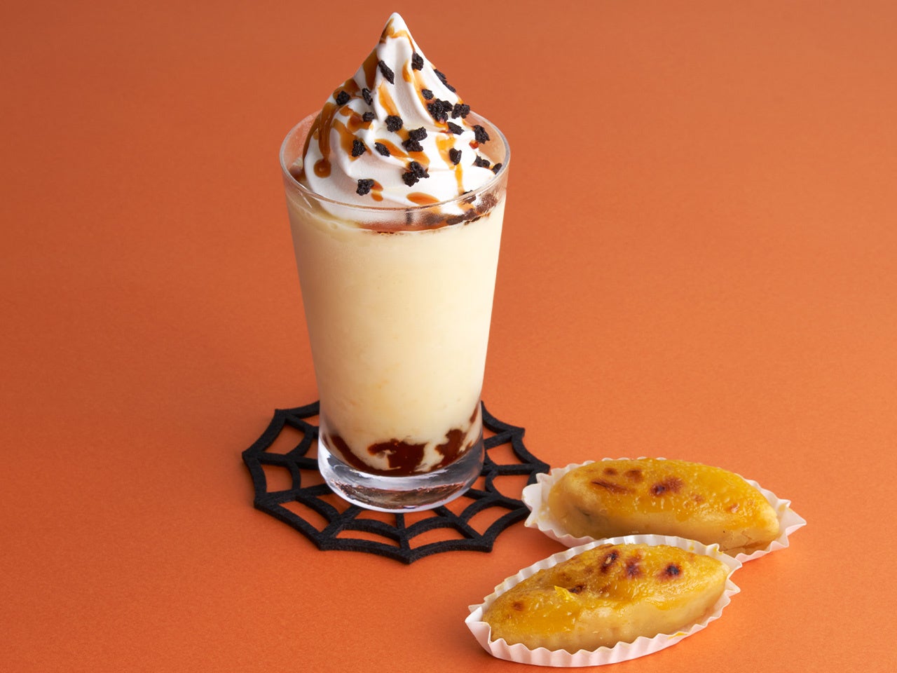 ドリンクは、紫の魔女をイメージし、芳醇な巨峰を使用した『Happy Halloween魔女の巨峰スムージー』と、ハロウィンを象徴するジャックオーランタンをイメージし、さつまいもをふんだんに使用した、『Happy Halloween スイートポテトスムージー』が登場。さらに、おばけたちのハロウィンパーティーを紅いもとかぼちゃで表現した、『紅いも&かぼちゃのHappy Halloweenパフェ』が登場します。
