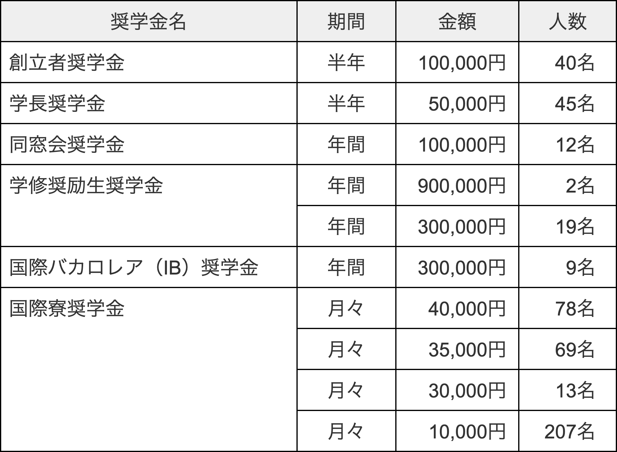 創立者奨学金ならびに学長奨学金は、前学期(2022年度前期)の成績優秀者に対して奨学金を支給する制度です。2022年度は創立者奨学金40名(前期20名・後期20名)、学長奨学金45(前期23名・後期22名)、計85名の学生が採用されました。その中には、Global BBA学生6名(前期3名・後期3名)が採用されています。