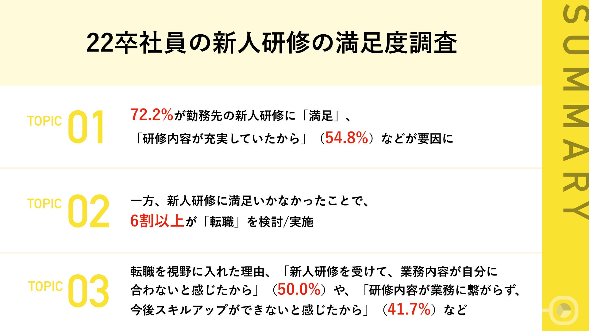 - 新人研修に満足いかなかったことで、6割以上が「転職」を検討/実施