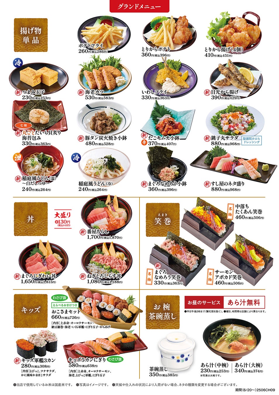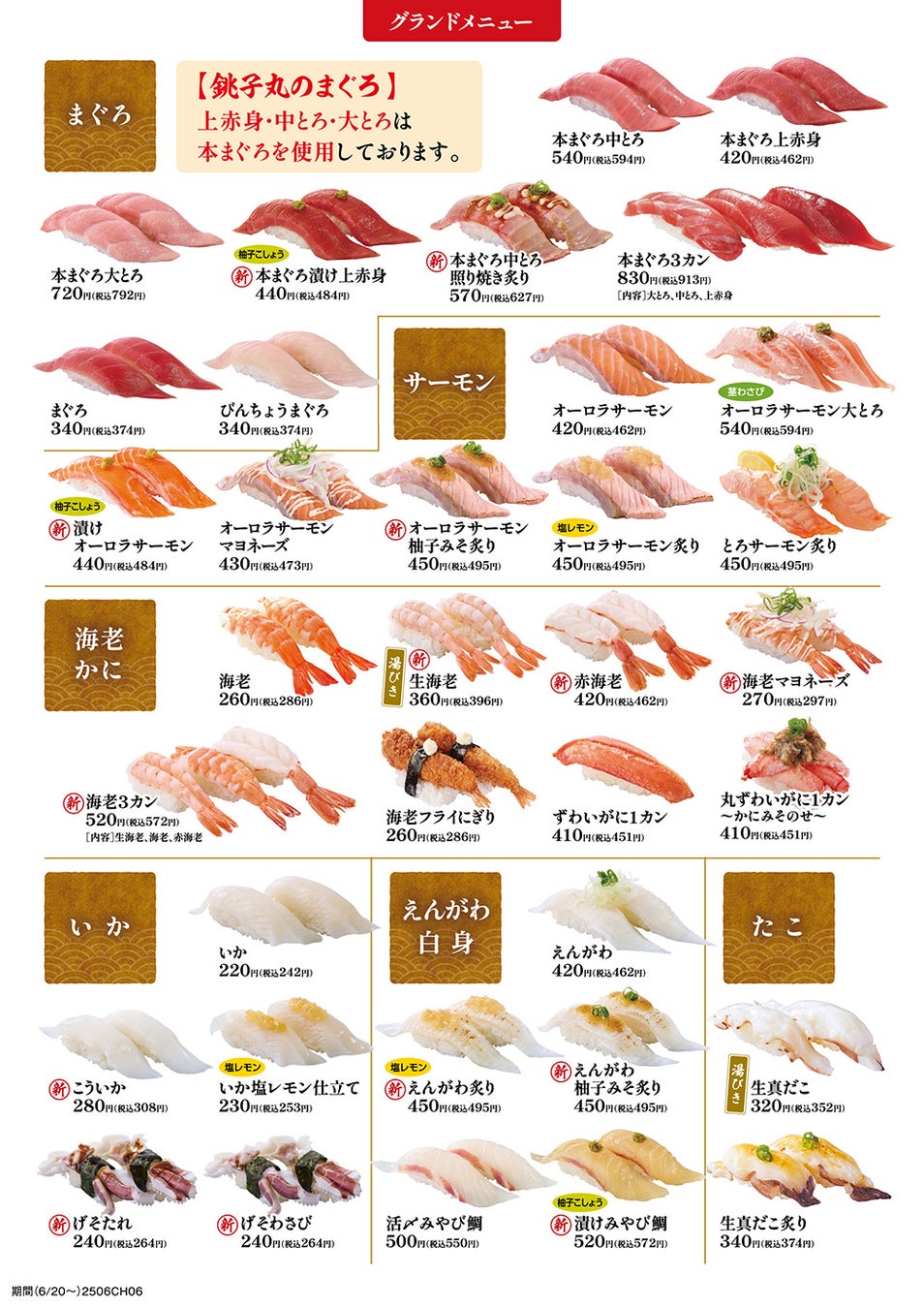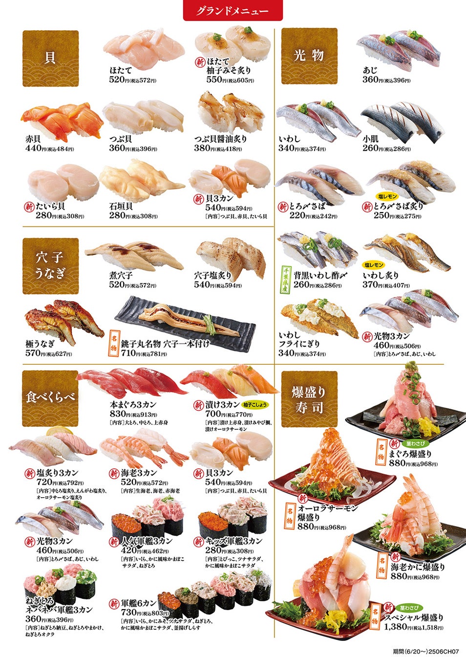 【すし銚子丸】6月20日(金)より、グランドメニューが変わります!