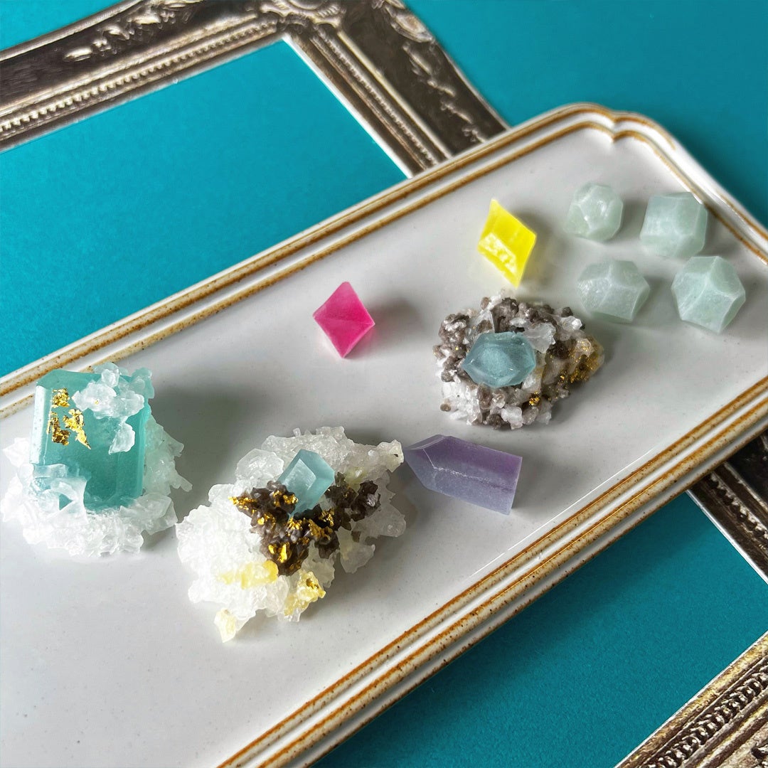 「ArtなFoodであそぶ」をコンセプトに、代表作鉱物みたいなお菓子「こうぶつヲカシ」(琥珀糖)をはじめ、宝石を散りばめたようなアイスケーキ「宝石のカッサータ」やオリジナルグッズを展開。食とアートを気軽に楽しみ、日常に驚きと感動のある世界を目指して福岡で活動している会社です。2020年にはハラペコラボ ミュージアムショップ&カフェをオープン。ランチやスイーツを楽しめるカフェを併設した店舗でお菓子やオリジナルグッズを販売しており、その隣にはアトリエを構えています。