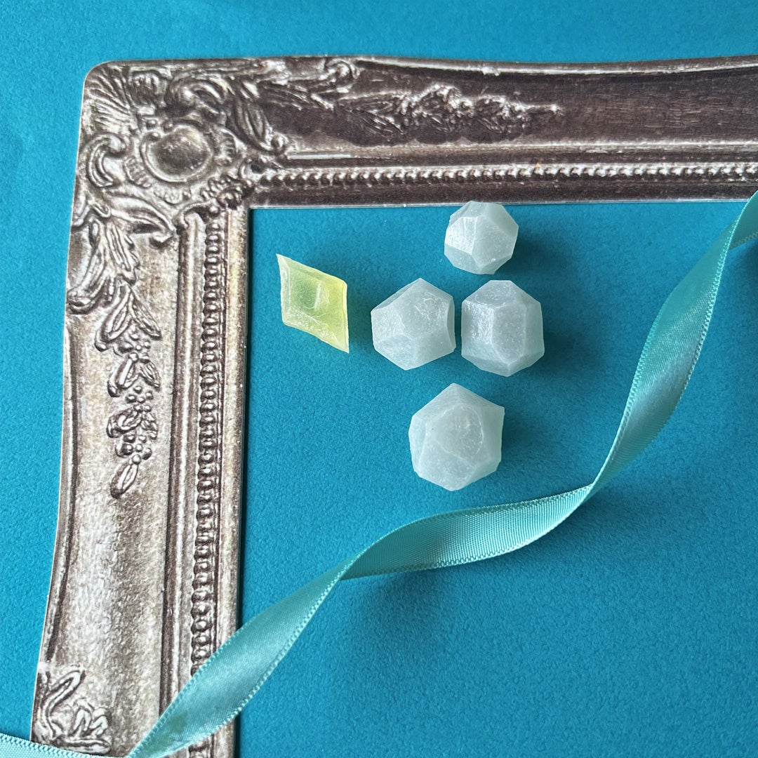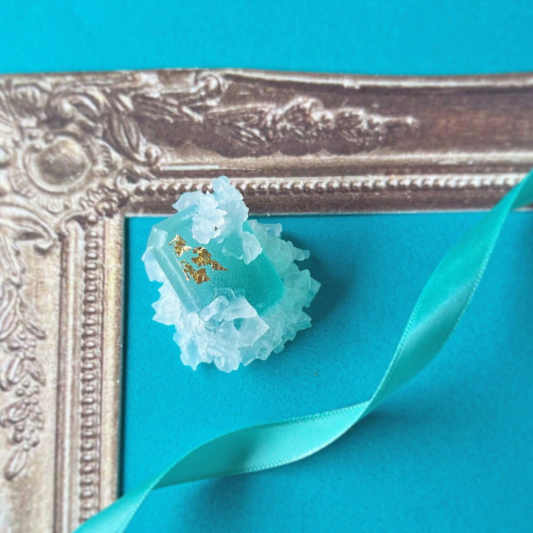 1ヶ月間限定で制作する琥珀糖こうぶつヲカシの人気の誕生石シリーズに、5月の誕生石が登場。小刀でひとつひとつ切り出す宝石のような形が魅力の寒天菓子。
