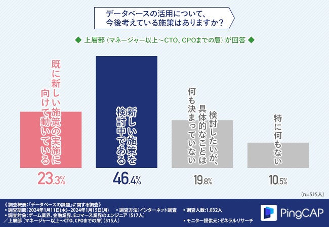 約7割の企業で、データベースに関する新しい施策を検討していることが明らかになりました。