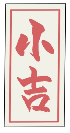 おみくじの中身は、いたって一般的。凶から大吉まで多種多様のメッセージが込められたおみくじが入っています。「願い事」や「待ち人」から「恋愛」まで、たとえばこんな形式で結果が提供されるんです。