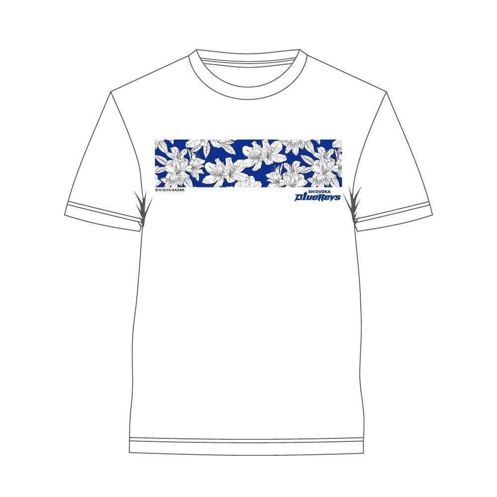 全国の県花をデザインに取り入れ、日比谷花壇オリジナルの花柄パターンとして表現した「47Flowers」シリーズより、静岡県の県花であるツツジのデザインが静岡ブルーレヴズカラーになって登場。フロント正面にツツジのロゴがデザインされたコラボTシャツは爽やかな印象を与えるブルーを基調として、より日常使いしやすいデザイン性となっております。試合観戦コーデやデイリーユースでのおしゃれも楽しんでほしいという想いを込めたコラボTシャツです。