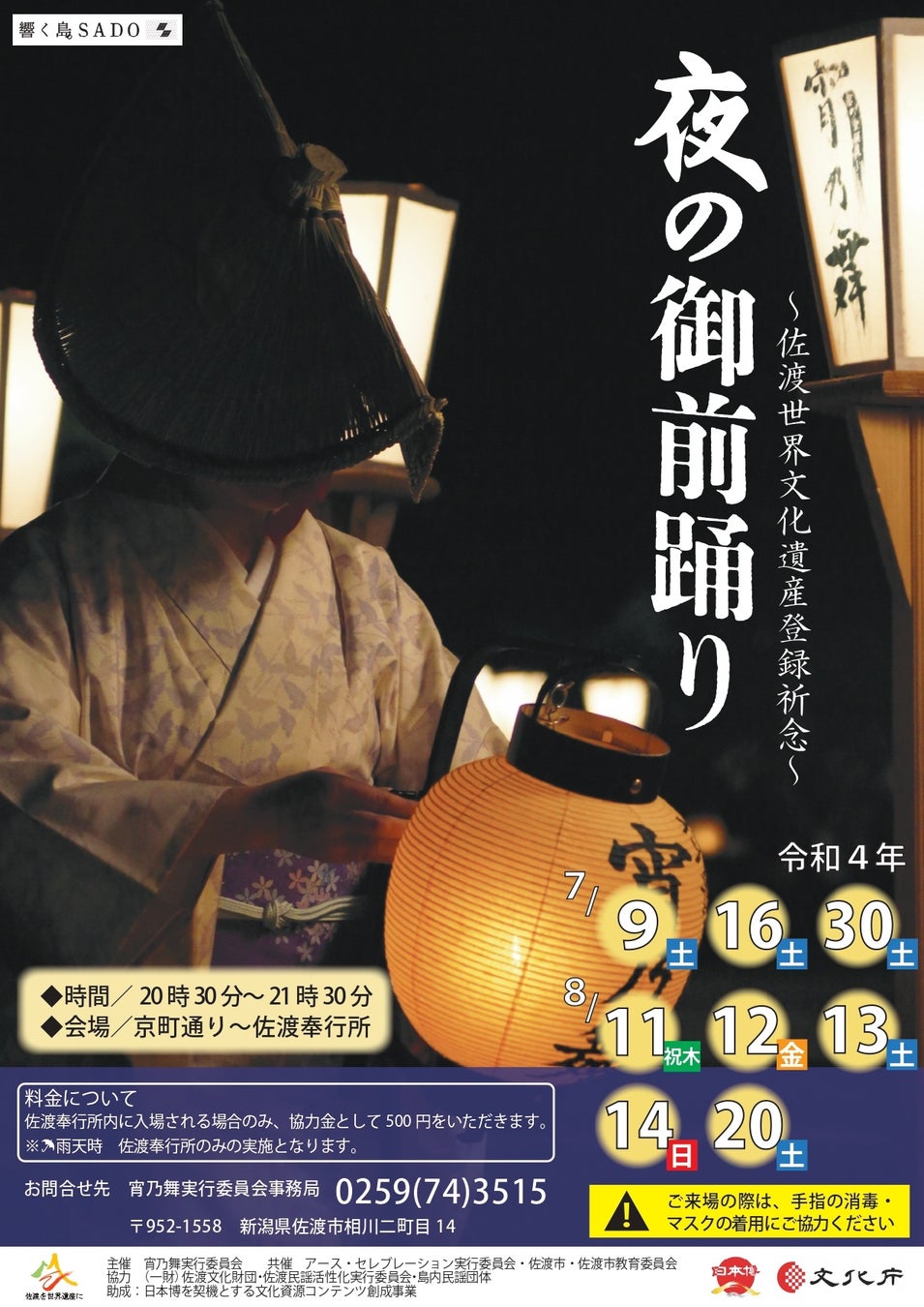 「佐渡島の金山」の世界文化遺産登録を祈念して、「夜の御前踊り」を開催します。