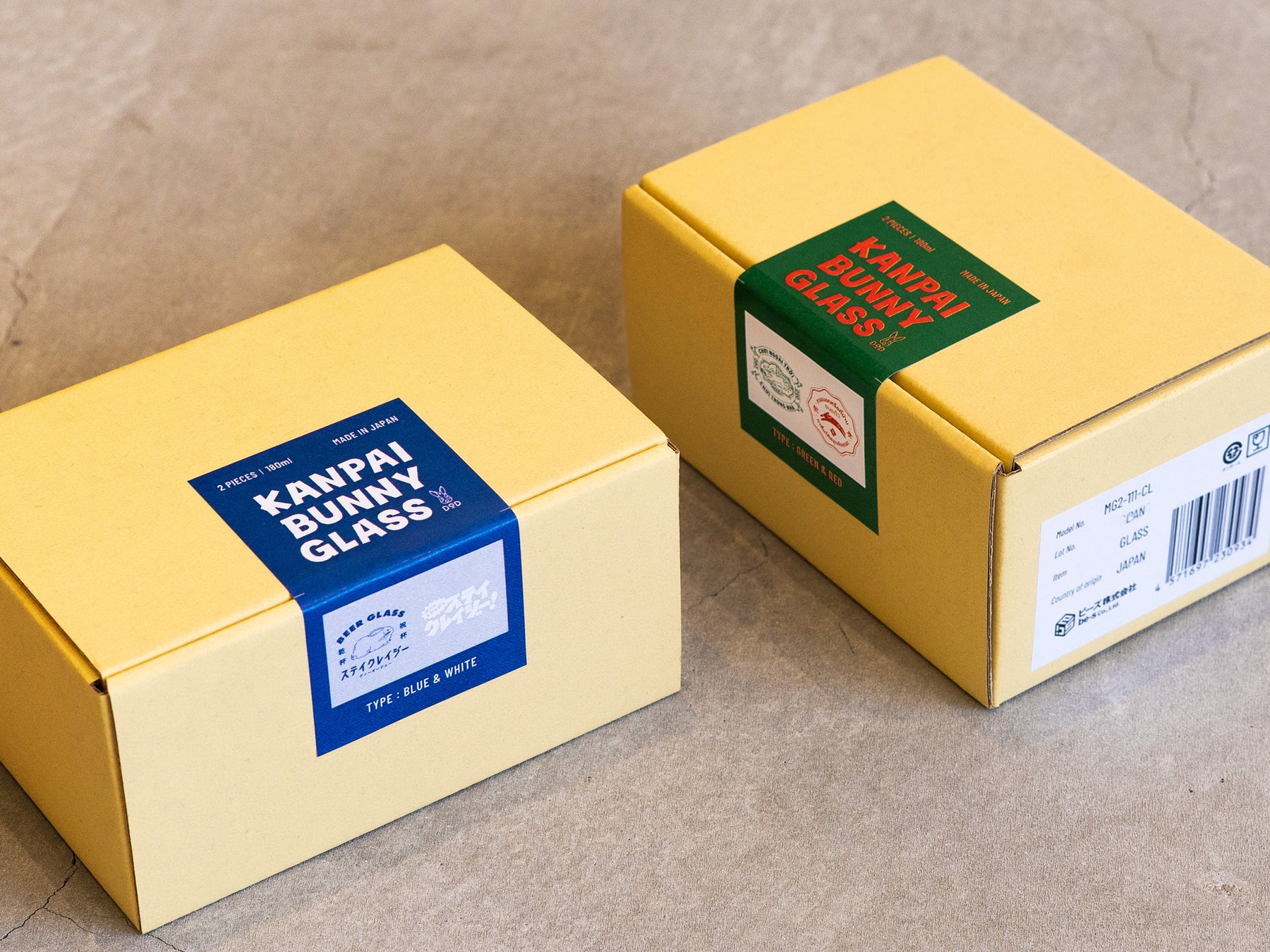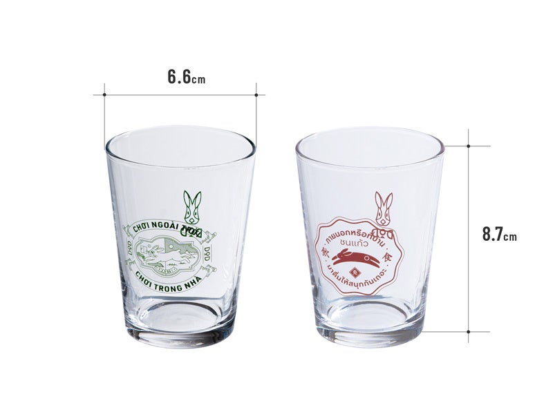 製品名:カンパイバニーグラス(2個セット) 型番・カラー:MG2-110-CL・ブルー&ホワイト MG2-111-CL・グリーン&レッド 販売価格(税込):2,970円 サイズ:(約)H8.7cm×上口幅6.6cm 総重量:(約)255g ※2個 材質:ガラス セット内容:グラス 2個 |