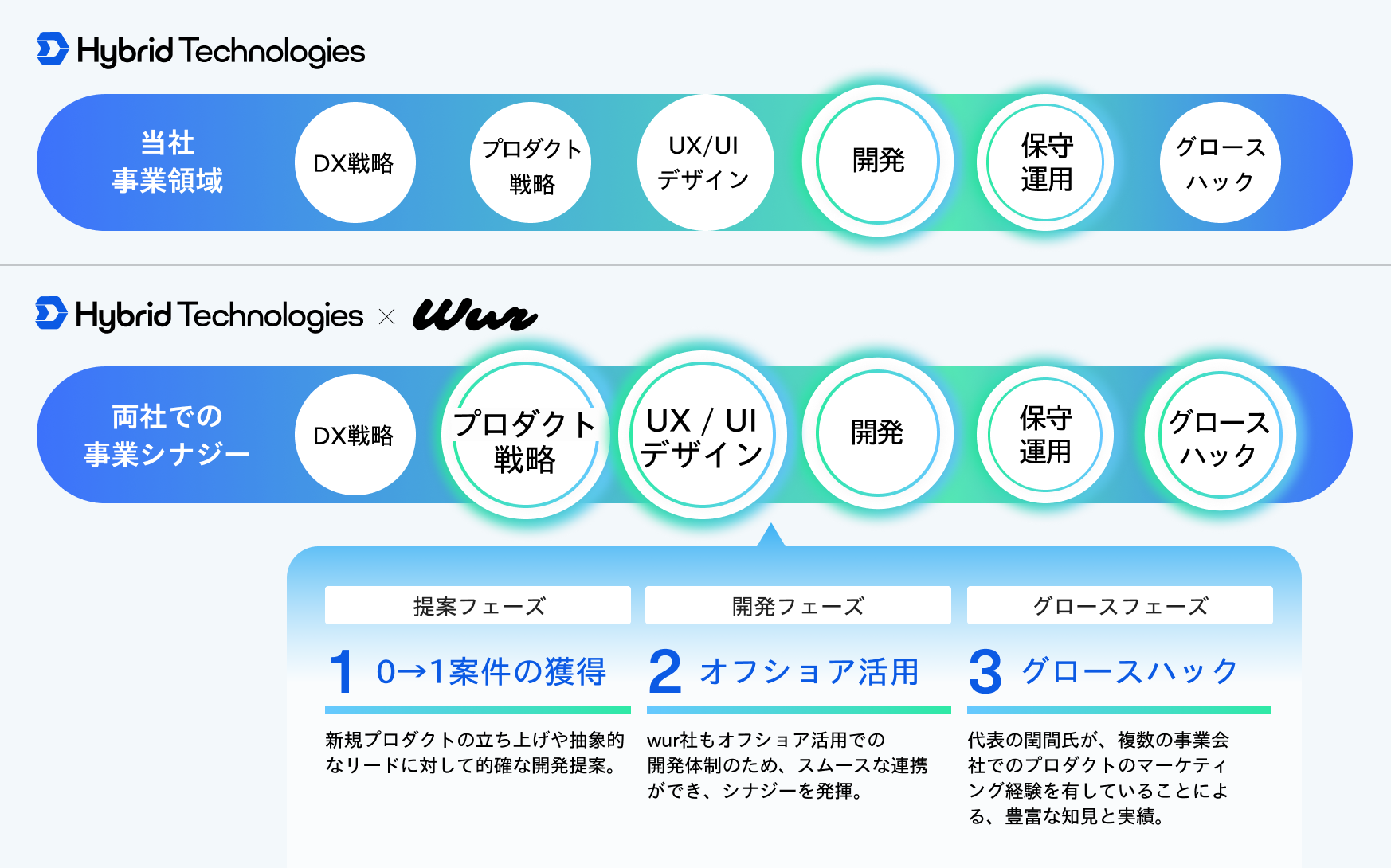 大手交通インフラを中心に大規模なプロジェクトマネジメント経験を持つ株式会社ハイブリッドテックエージェント、サービス構想の具体化等の上流工程に強みを持つWur株式会社と、当社が持つベトナムの機動的なIT開発リソースのシナジーによって、日本国内を中心に幅広い業種、規模のお客様に対し、一気通貫、且つ機動的なソリューションを提供し、お客様の課題、ひいては日本社会の課題解決に寄与してまいります。