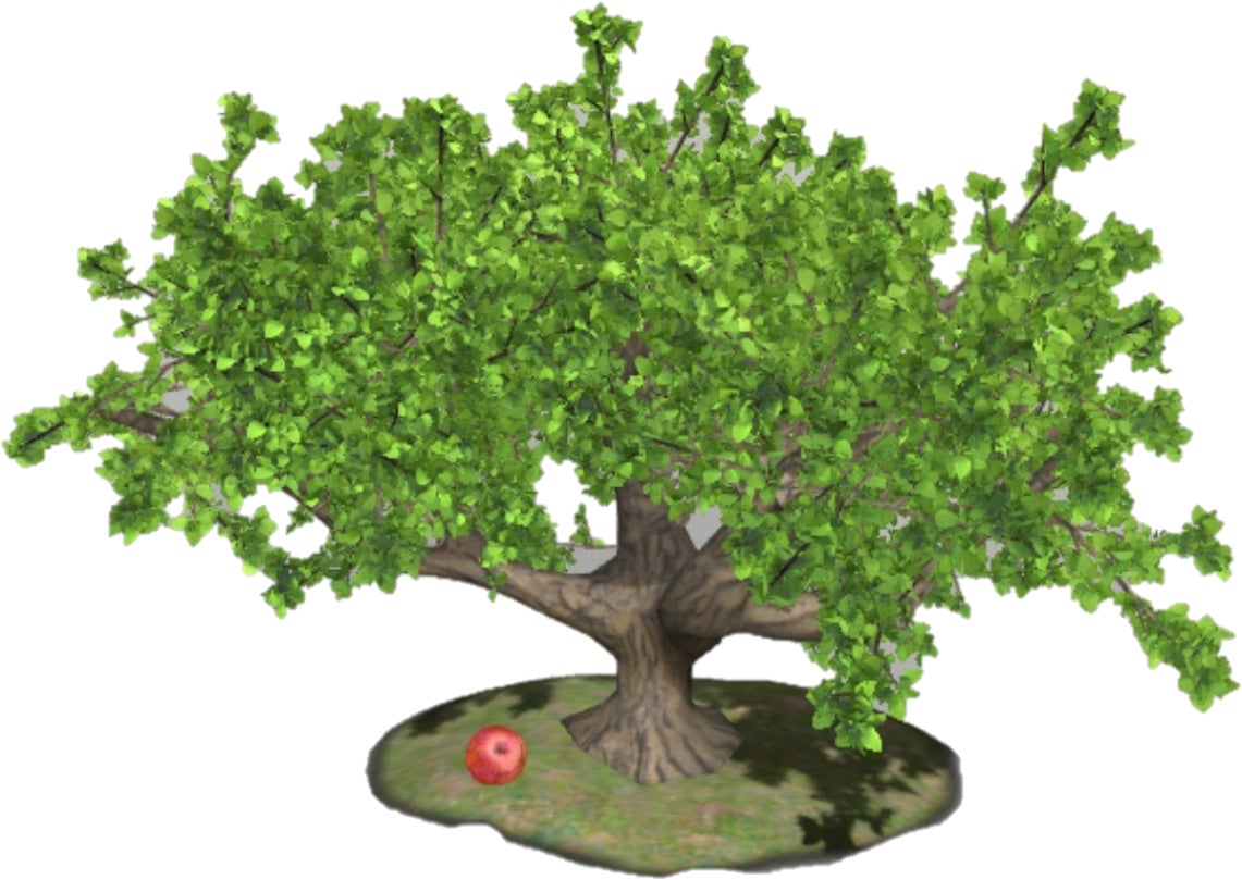 ④木に投稿したりんごが実ります。りんごをタップすると、投稿したワンアクションが表示されます。