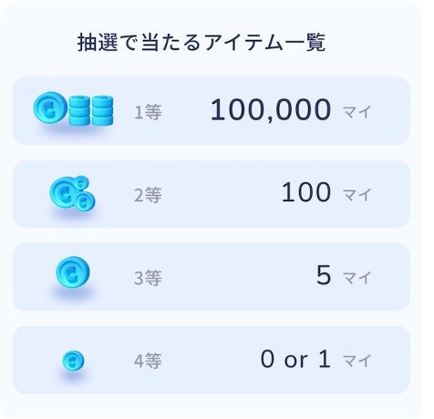 ※「マイページ」のコイン履歴で当選履歴を確認することができます。