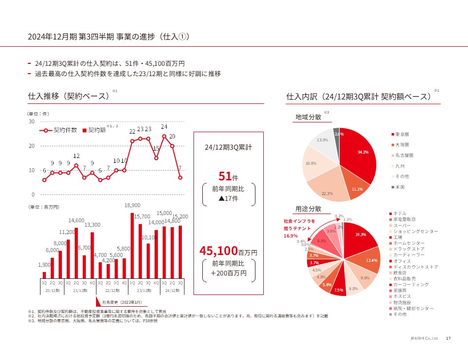 仕入は51件・45,100百万円(前年同期比▲17件・+200百万円)となりました。