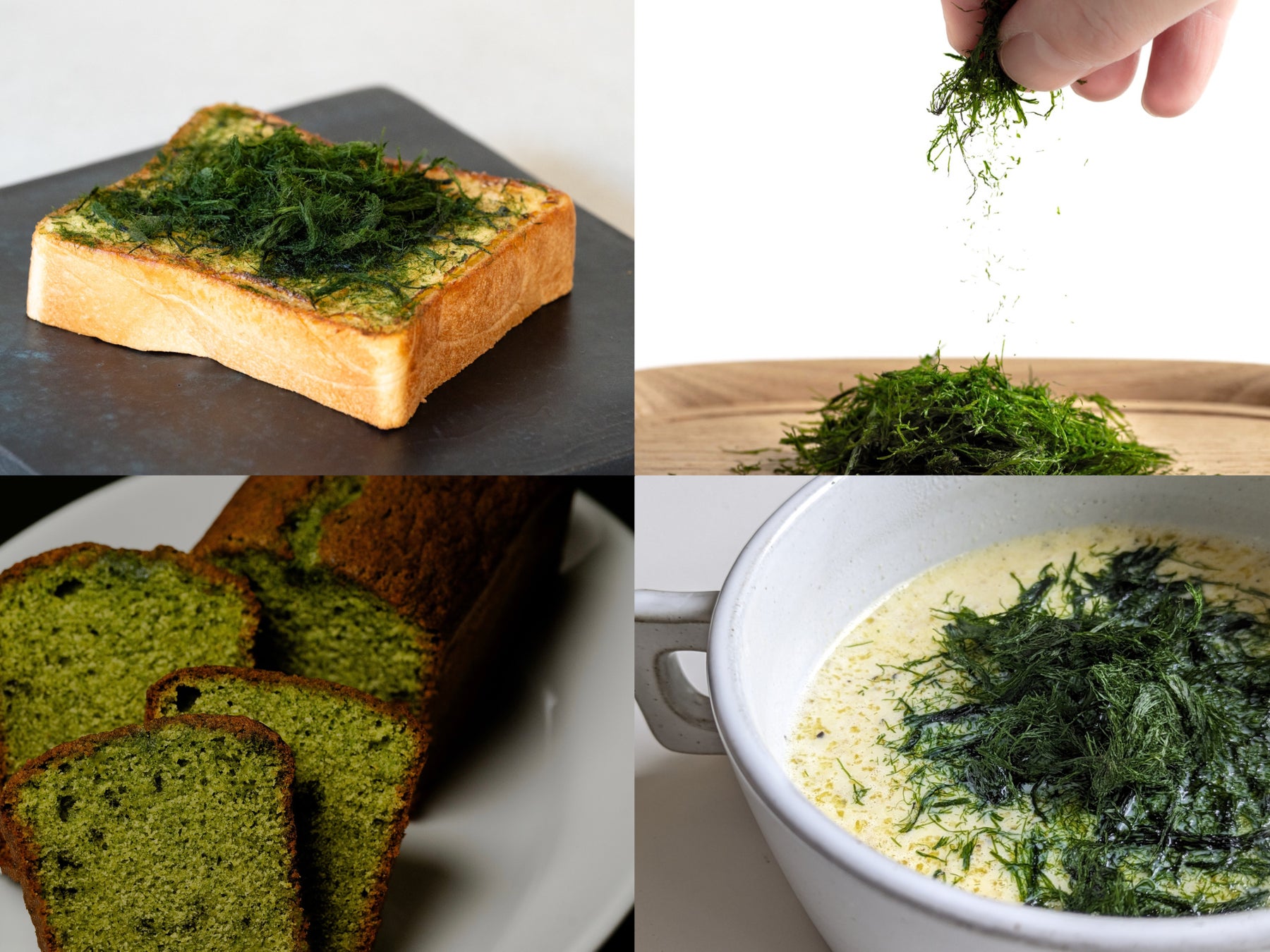 日本テレビ系列『満天☆青空レストラン』でも紹介され話題となった「すじ青のり」のほか、海藻の新しい食文化を提案するスイーツシリーズ【海菓 umika】第一弾となる「海のパウンドケーキ -すじ青のり- 」を販売するなど、海藻の魅力を五感で楽しめるラインアップをご用意しています。