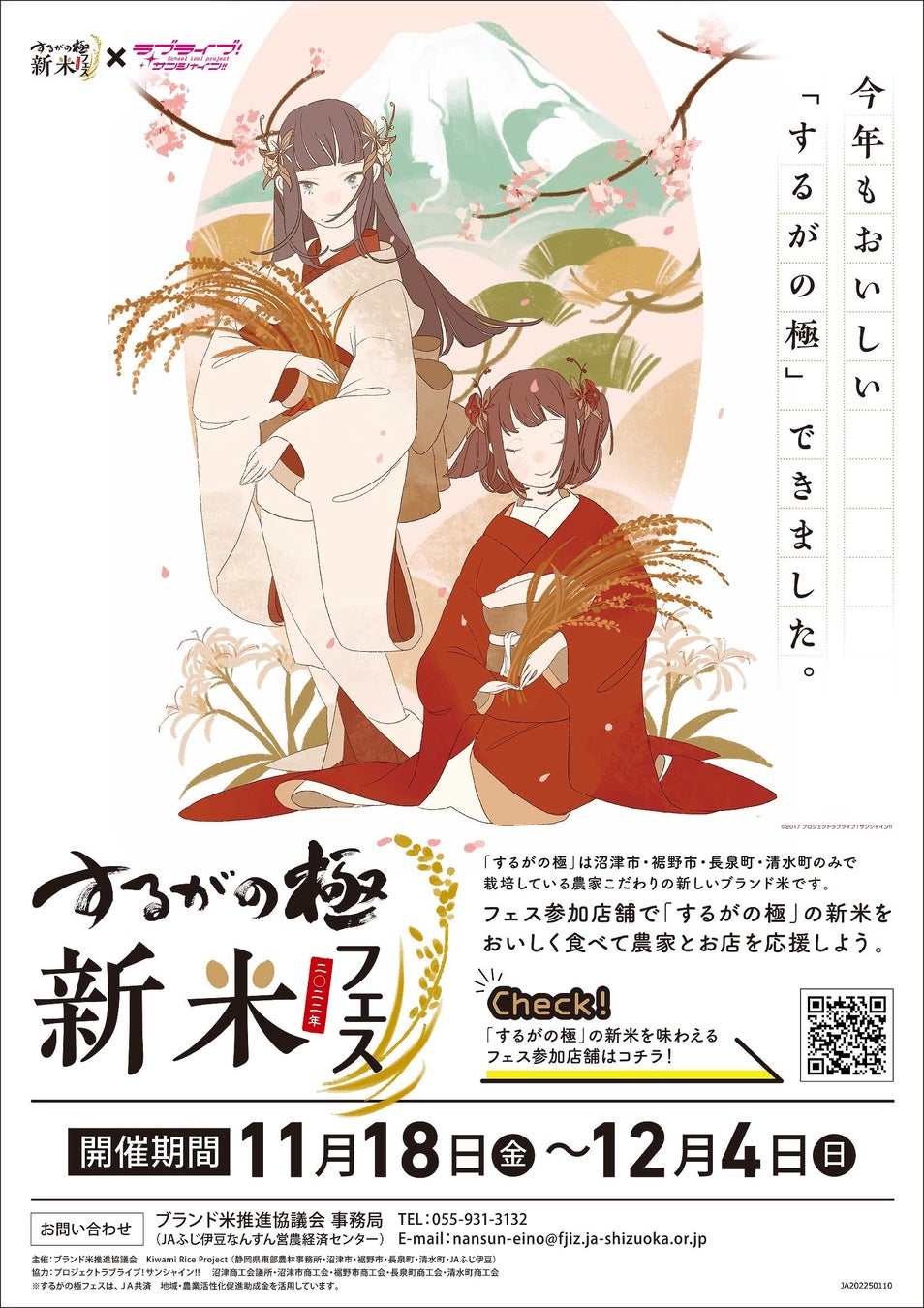 その他、フェス期間中には『ラブライブ!サンシャイン!!』オリジナルパッケージ米「するがの極」キューブタイプ3合(500円・税込)も販売いたします。