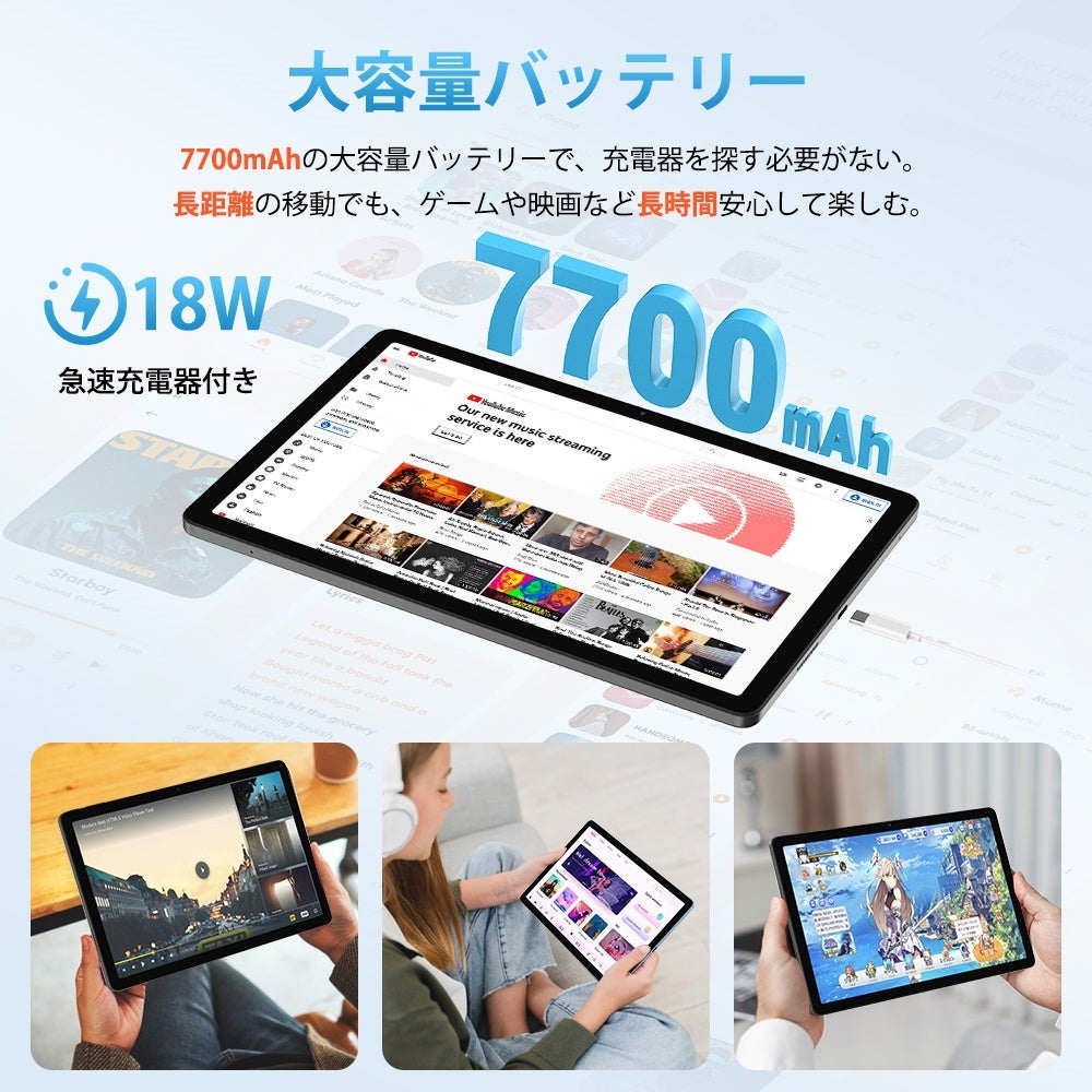 Android14★高性能★Widevine L1★大容量バッテリー★11インチ大画面★高画質カメラ★7,700mAH大容量バッテリー★18W急速充電★4G LTE通信★軽量&コンパクト★SIMフリー