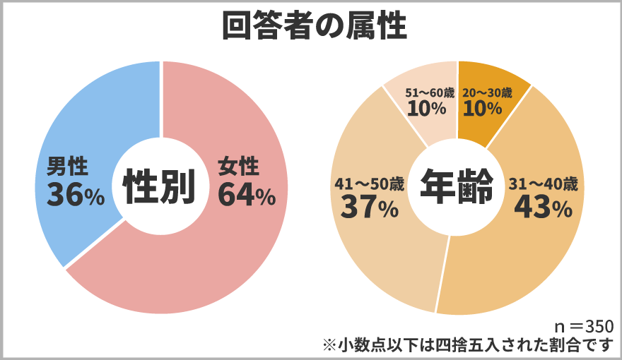 今回ご協力頂いたのは350人で、割合は以下の通りです。