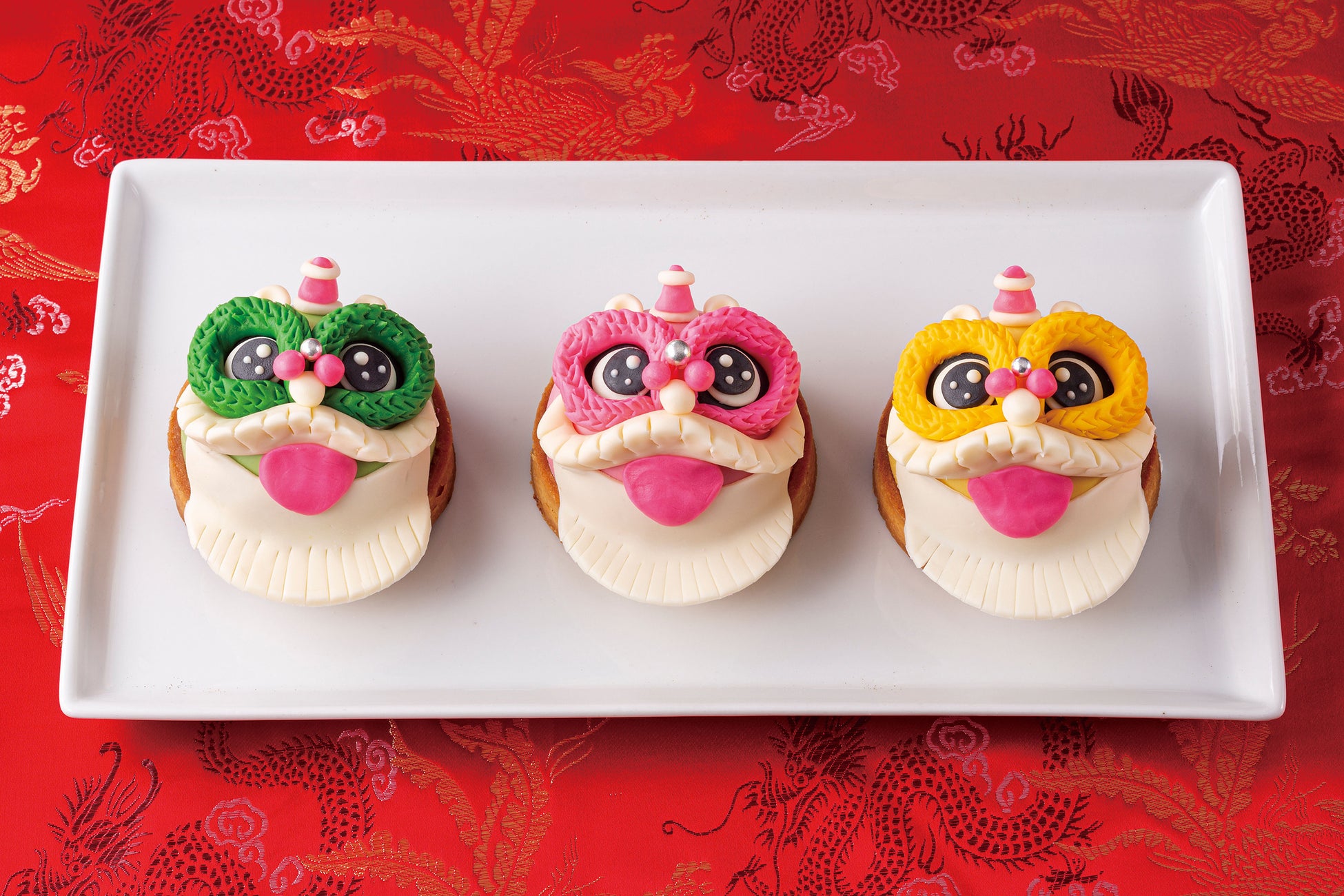 中国獅子をモチーフにした3色のスイーツに願いを込めて