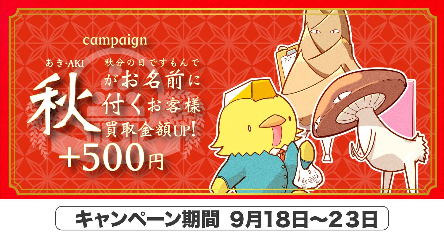 【ゴールドプラザ】秋分の日を祝しまして!お名前に秋が付くお客様に500円キャッシュバックキャンペーン!!