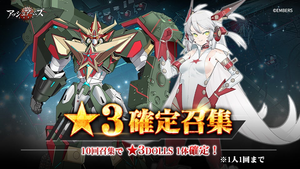 有料結晶石限定で10回の召集を行い、そのうち☆3 DOLLSが1体以上確定で出現します。