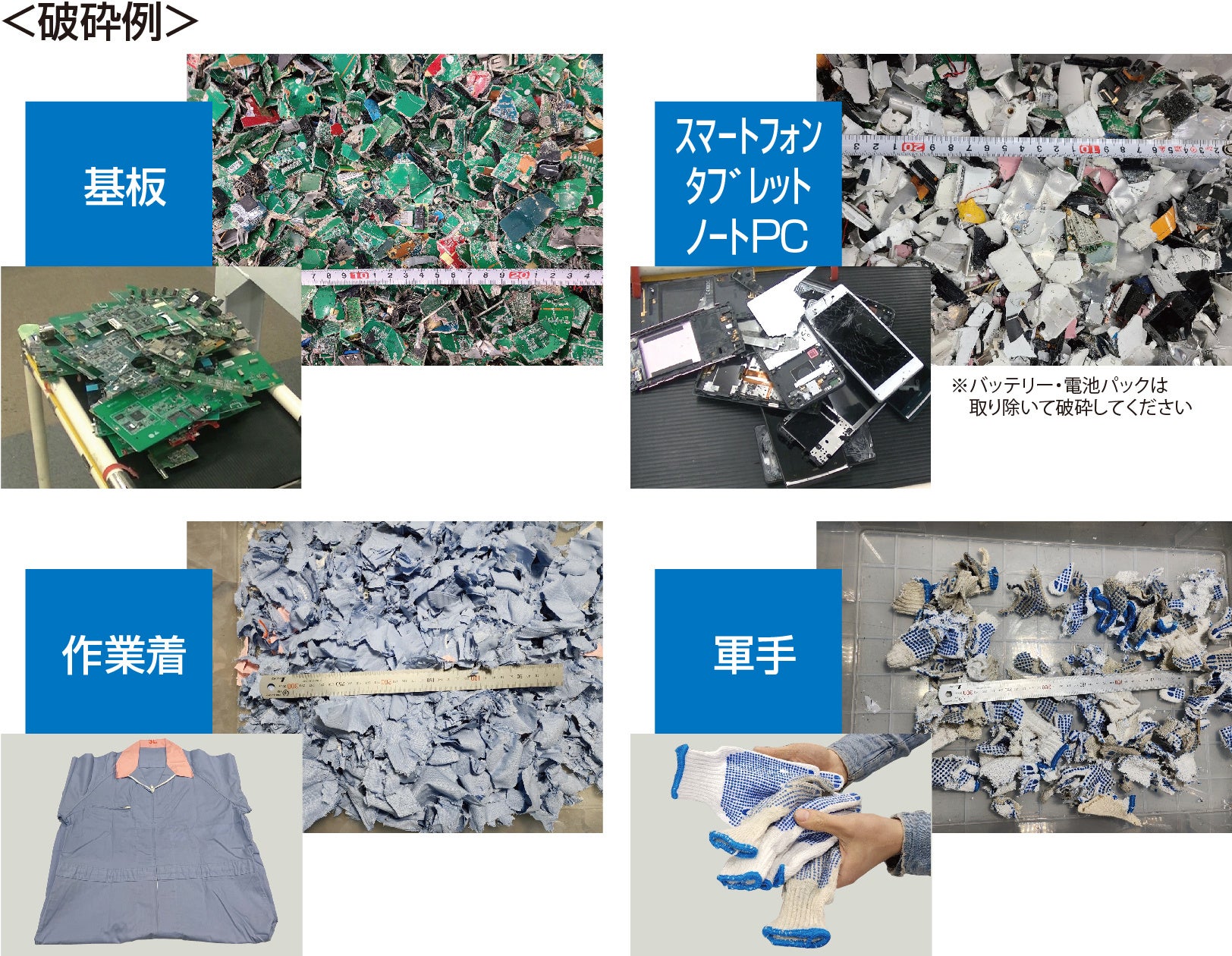 破砕後サイズ | 約30mm×60mm(刃物カスタマイズや対象物により変動) |