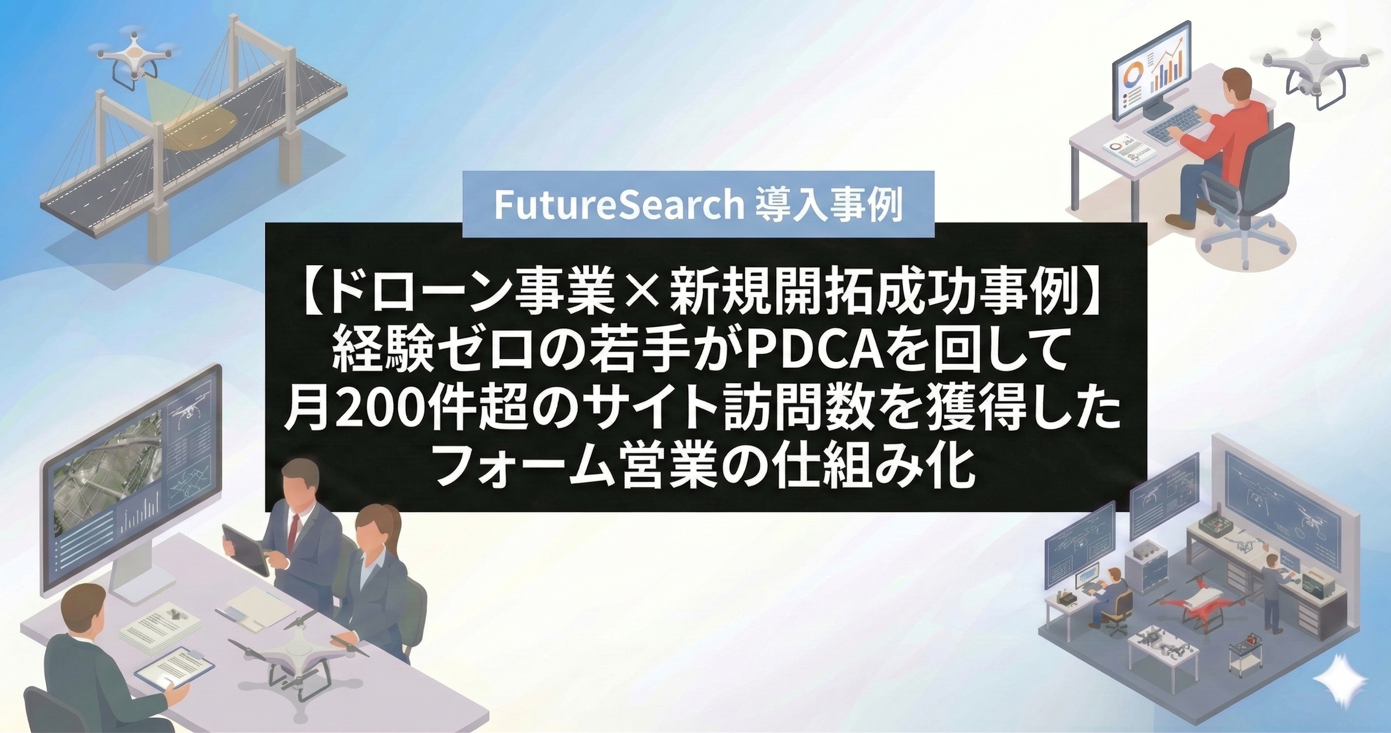 法人向け営業支援ツール「FutureSearch(フューチャーサーチ)」を提供する株式会社FUTUREWOODS(本社:東京都文京区、代表取締役:小浜勇人)は、首都圏でインフラ点検や産業用ドローン導入支援を手掛ける企業における、フォーム営業自動化の成功事例を公開いたしました。営業の属人化を脱却し、経験の浅い若手チームでもユニーク訪問率10%超を安定して叩き出す具体的なターゲティング手法と企業選定のノウハウをご紹介します。