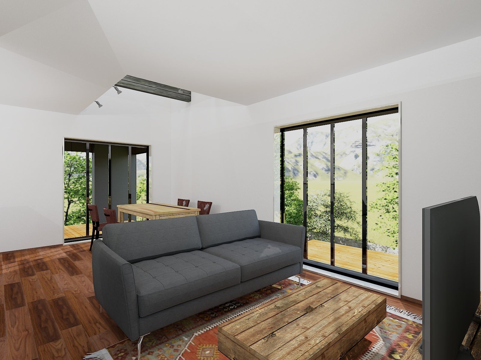 室内にも木目を取り入れることで、スタイリッシュながらも温かみのある空間を創出します。