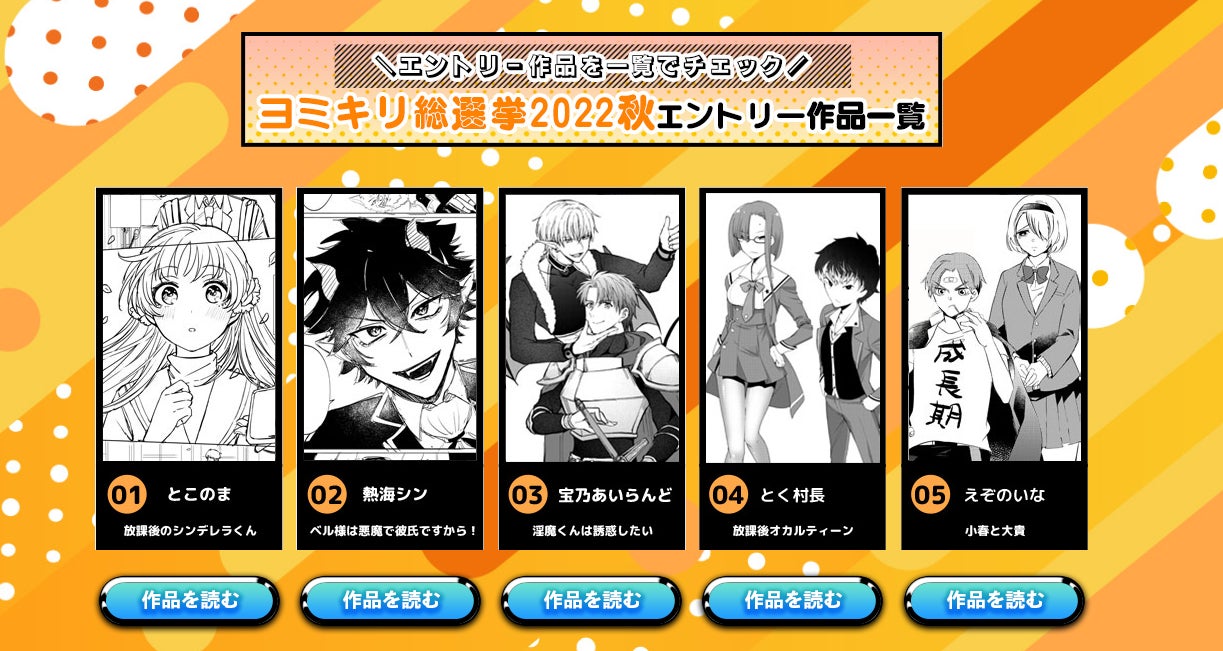 <中間順位速報>『第1回コミック アース・スター ヨミキリ総選挙』《ネーム編の投票は10月31日まで》