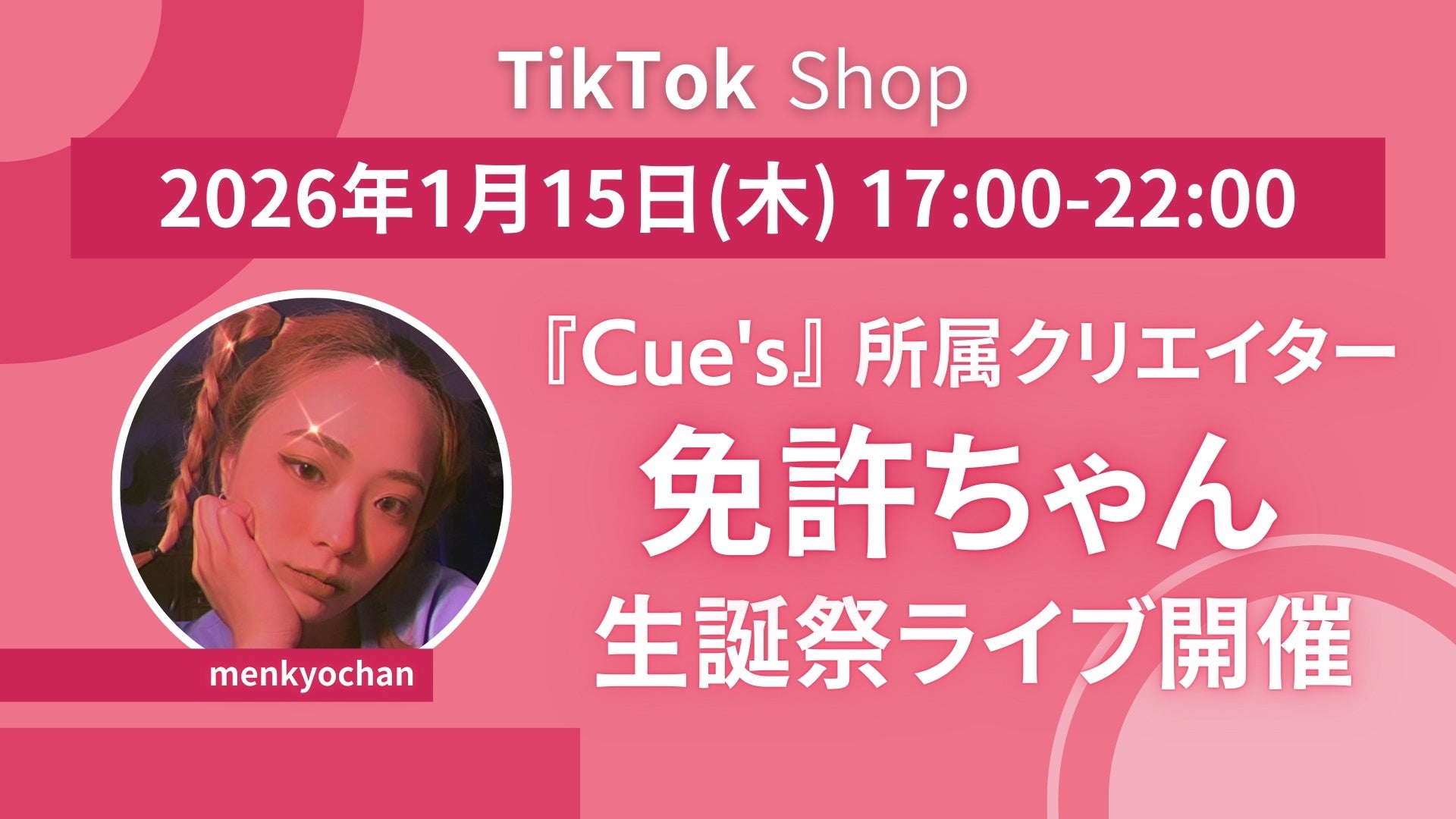ULTRA SOCIAL株式会社(本社:東京都港区、代表取締役社長:高橋 亮太、以下当社)は、当社クリエイタープロダクション「Cue’s(キューズ)」所属の「免許ちゃん」による、TikTok Shopを活用した特別企画「免許ちゃん生誕祭」を2026年1月15日(木)に開催することをお知らせいたします。本イベントでは、累計8時間にわたるライブコマース配信を実施。従来の美容カテゴリーに加え、ガジェットやインテリア、フードなどの15ジャンル以上のアイテムを紹介します。