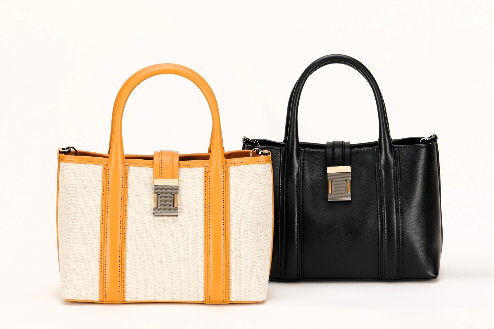 実用性とデザイン性を兼ね備え、広々としたコンパートメントを備えることで、日常に寄り添う機能性を実現しています。素材は、ベージュトーンにレザートリムのコントラストが映えるリネンとコットンを混紡したナチュラルなファブリックと、柔らかな質感と控えめな光沢が洗練された印象を際立たせるブラックのカーフレザーの2種類を2サイズで展開。いずれも軽やかで洗練されたサマースタイルを演出し、タイムレスな魅力を放ちます。