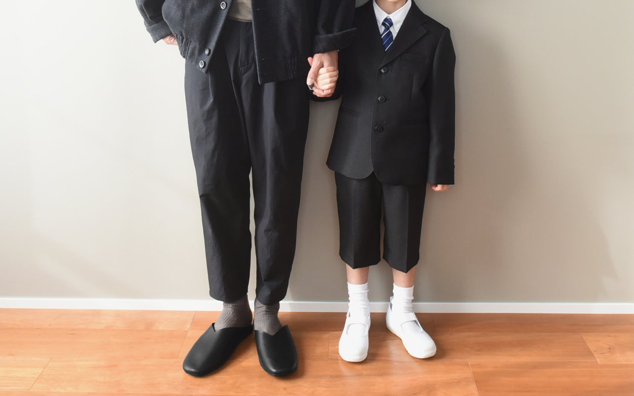 学校訪問用の携帯シューズと言えば、一般的には女性向けデザインが多数。いざパパ・ママ揃って学校行事に行くとなると、パパ用の携帯シューズの準備が間に合わなかったり、家用のスリッパをそのまま持っていったり。